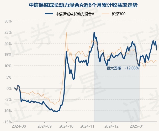 本站消息,1月27日,中信保诚成长动力混合A最新单位净值为1.1326元,累计净值为1.2872元,较前一交易日下跌3.16%。历史数据显示该基金近1个月下跌1.93%,近3个月上涨4.45%,近6个月上涨17.04%,近1年上涨20.73%。该基金近6个月的累计收益率走势如下图: